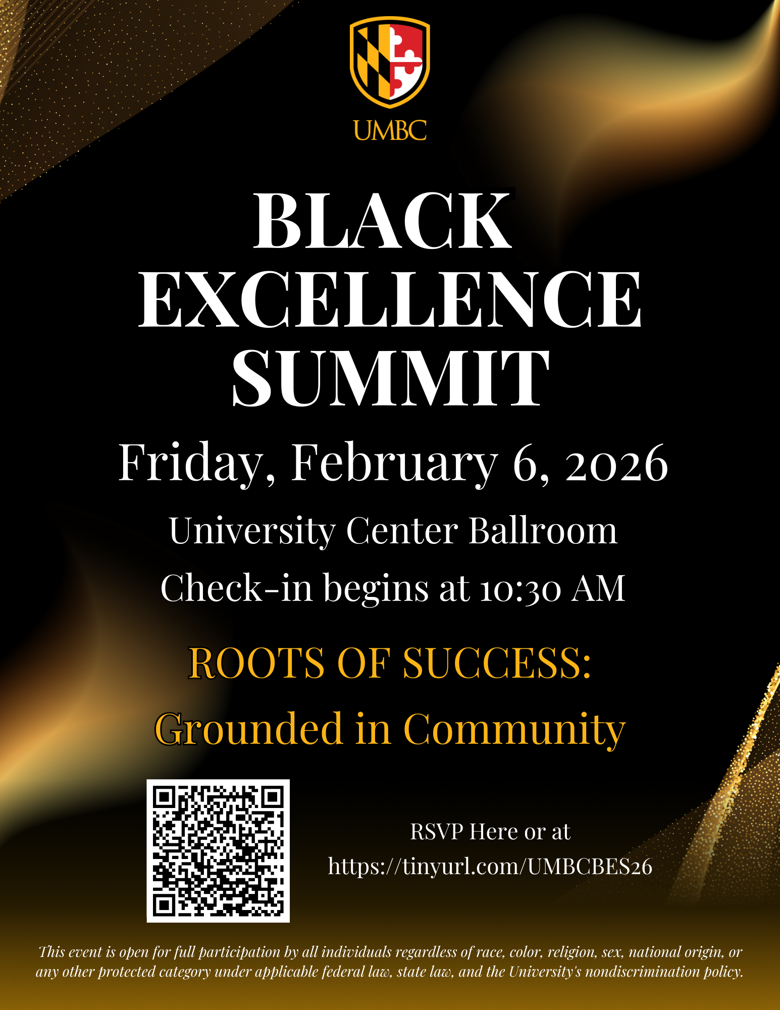 Our 2026 theme, "Roots of Success: Grounded in Community," highlights our foundational belief in the indispensable power of building and maintaining a shared community. We deeply value the rich diversity among our students, staff, and faculty, which is a key source of UMBC's strength. However, the reality for some of our community members, particularly those who are Black, often feel a gap in a shared cultural or racial community. To honor our theme, we aim to cultivate an environment where Black students, staff, and community members are not only heard and seen but also feel grounded in our shared community. Through the Black Excellence Summit, we are evolving the concept of Black Excellence. We hope to redefine it away from appealing to external societal norms, and instead, focus on celebrating the richness of the Black experience within our community, recognizing and fostering success in all its genuine forms.