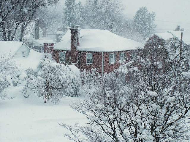 Another neighborhood intersection, with evidence that some fool brave soul has managed to drive through it.