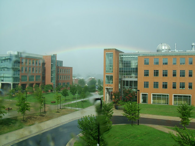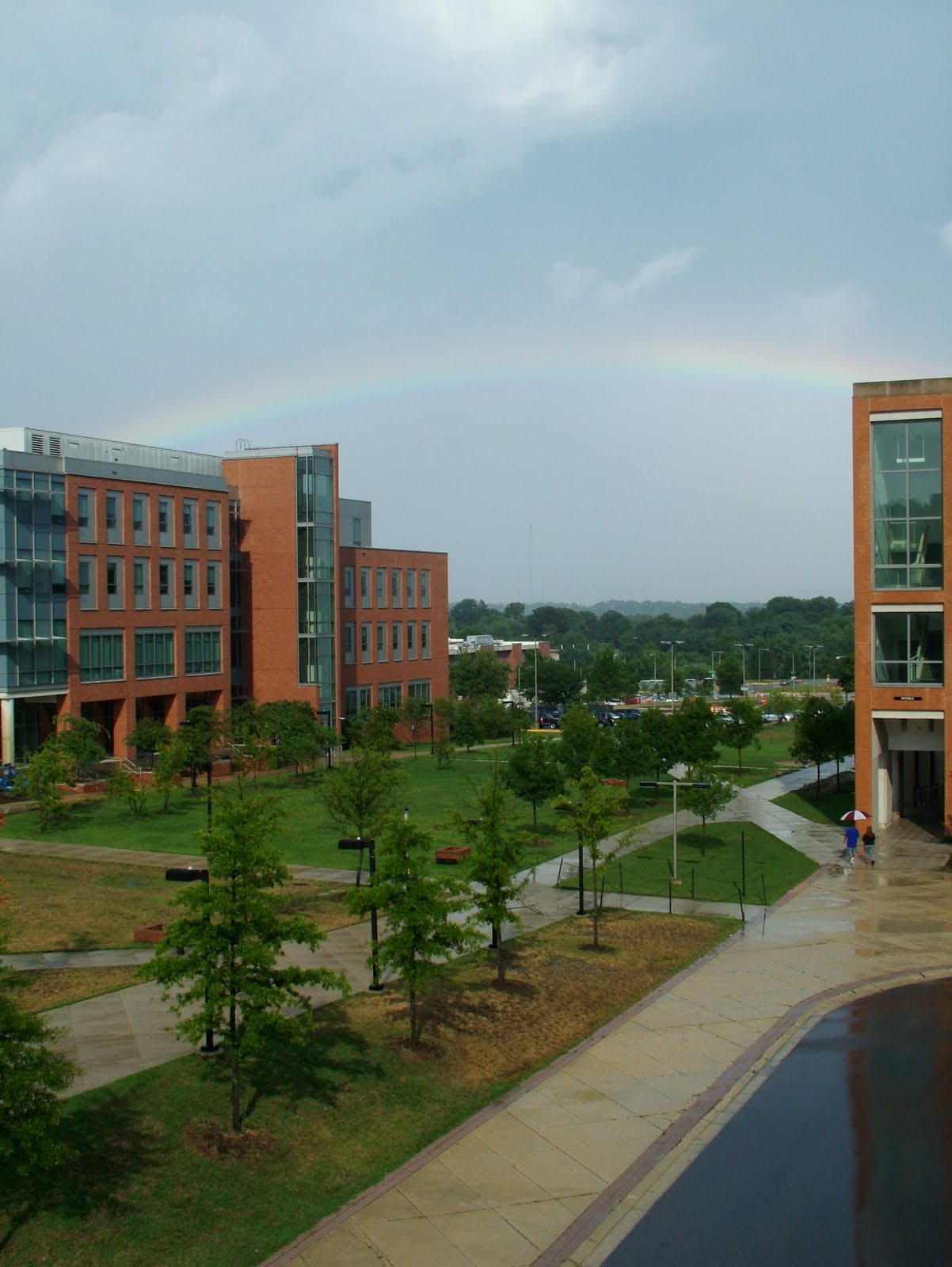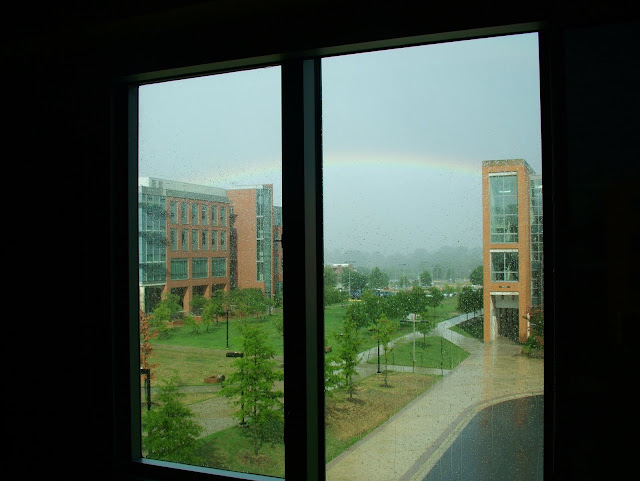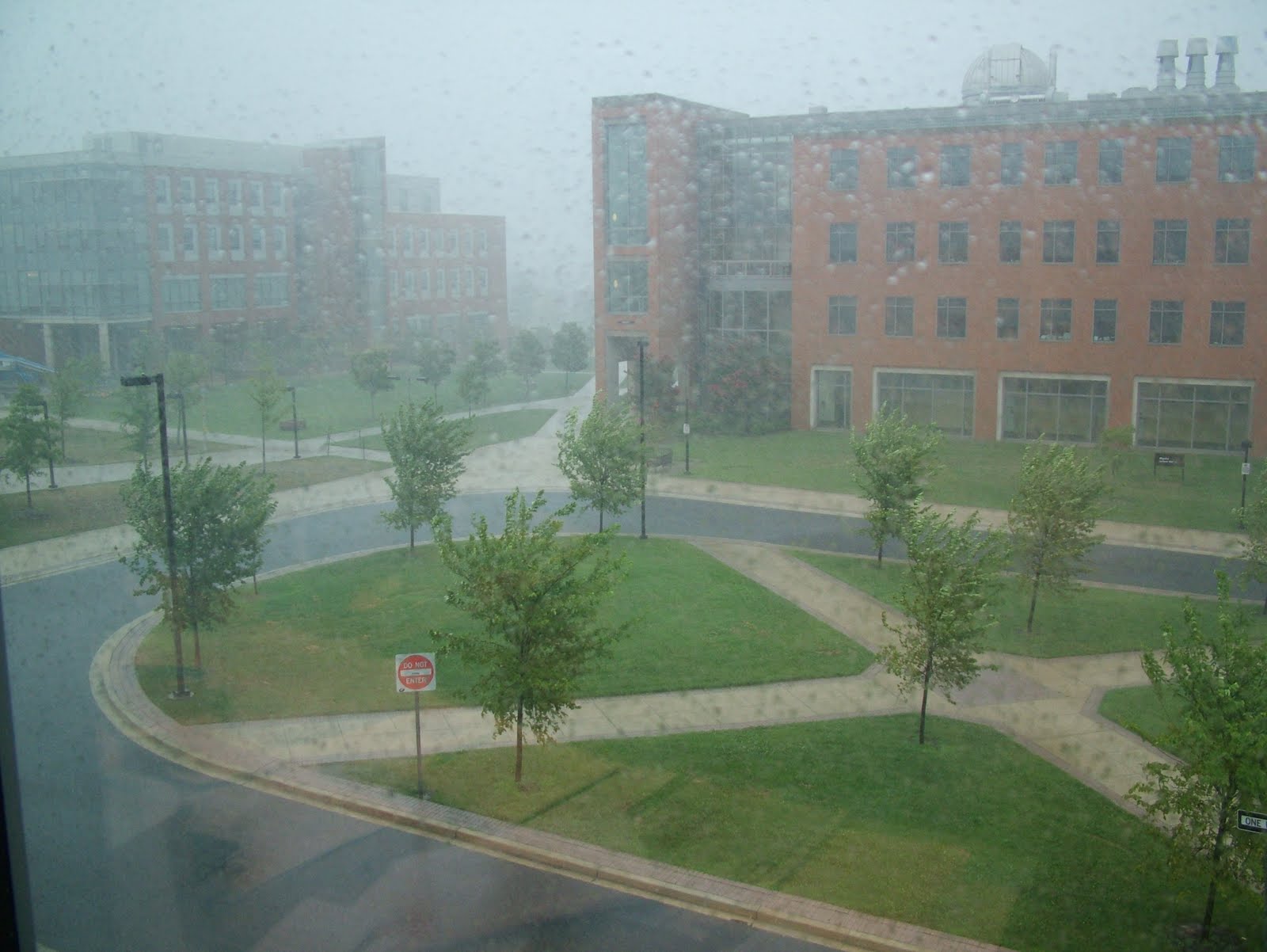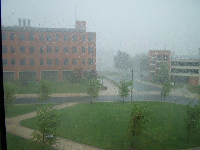 Photos taken from The Commons during the suddenly intense rain and sudden return of sunlight a few minutes ago. Everyone in The Commons was directed to seek "shelter in place" in a stairwell until the storm passed and a tornado warning was lifted.