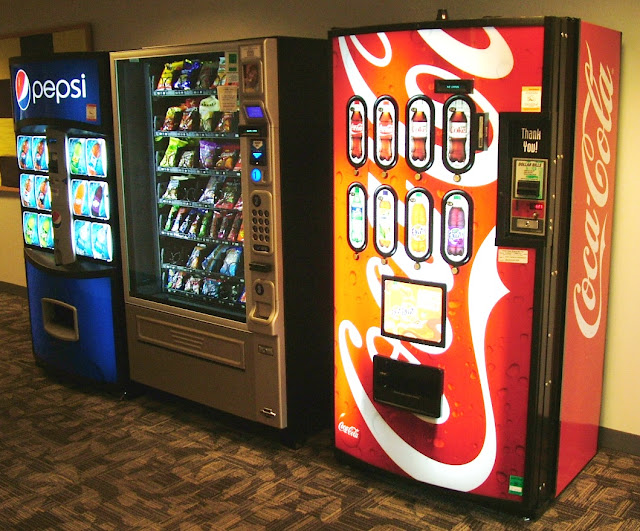 A beautiful sight on The Commons' 2nd floor: two rivals for UMBC's affections enjoy a brief, fragile coexistence. But it will not last--probably not even past today. Farewell, Coke machine. I used to despise you for rejecting my slightly folded or crumpled bills, but lately you've been quite accommodating. Welcome, Pepsi machine. I'm a little affronted that you plan to charge 25 cents more than Coke, but I'll forgive you if you add Diet Mountain Dew to your colorful menu.
